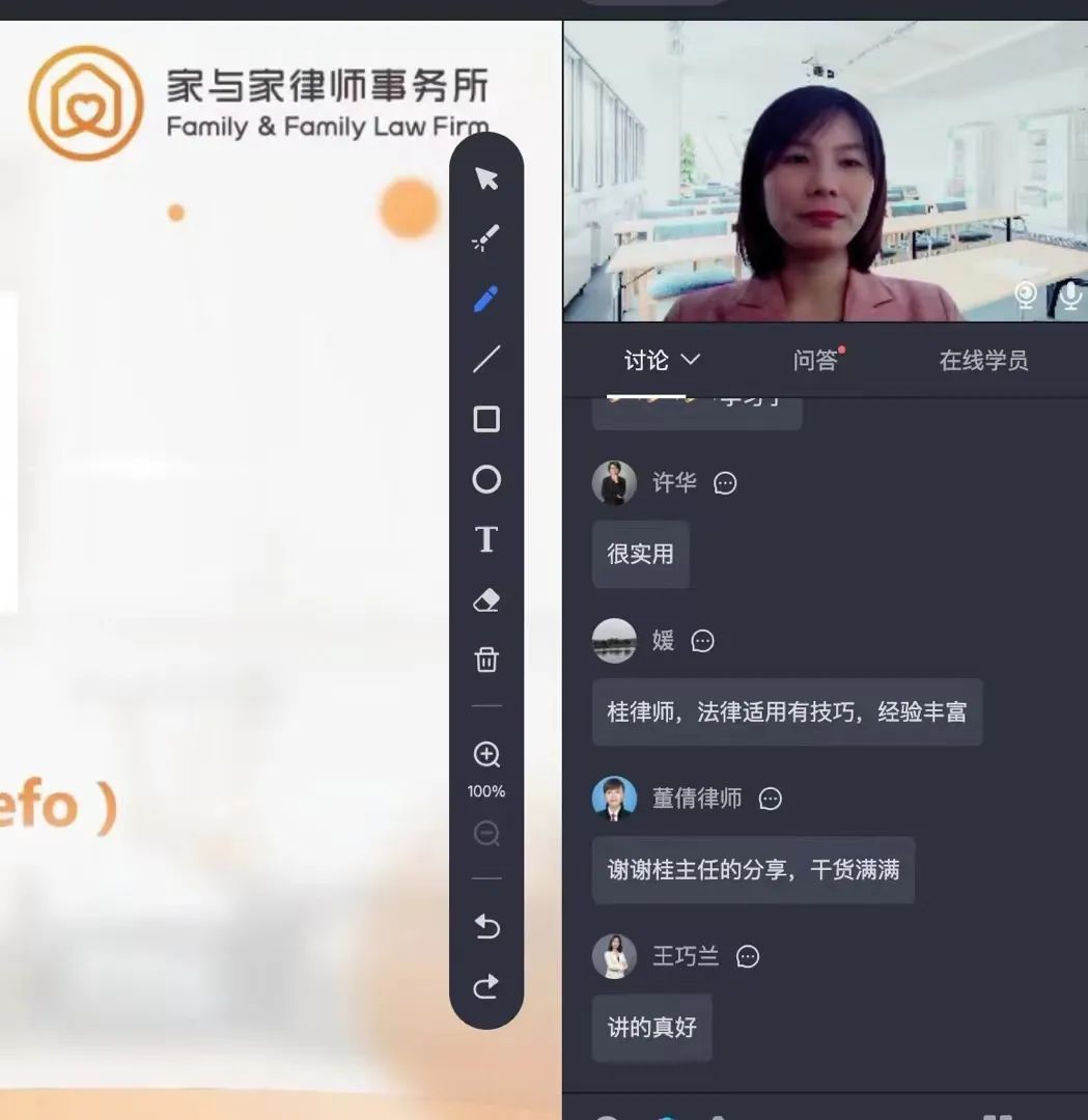 在这场专业与温暖交织并存的线上培训活动中,桂芳芳律师就婚姻家事法律服务业务疑难问题进行的精彩分享受到参与活动的法律界同仁的高度肯定。