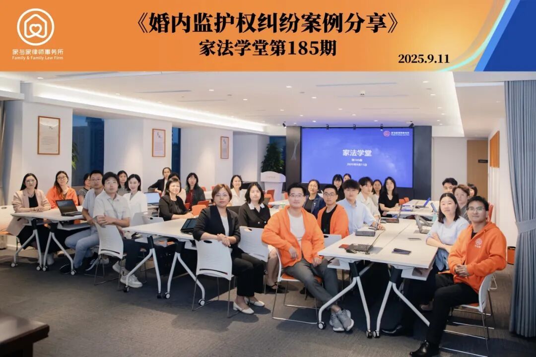 9月11日,家与家律师事务所开展第185期家法学堂活动。本期以“婚内监护权纠纷案例分享”为核心主题,由上海家与家律师事务所高级合伙人李慧萍律师主讲。她结合自身实战经验与指导案例,助力律师更精准地把握此类案件的办案逻辑与核心原则。