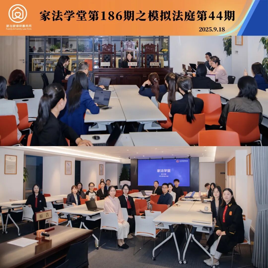 9月18日,上海家与家律师事务所开展第186期家法学堂活动,也是第44期模拟法庭培训。本期模拟法庭围绕“一方父母全额出资房屋的归属”与“朋友偷拍视频的证据合法性”两大争议焦点,通过还原真实庭审交锋场景,展开深度法律实务研讨,为律师团队积累家事案件处理经验提供实践平台。