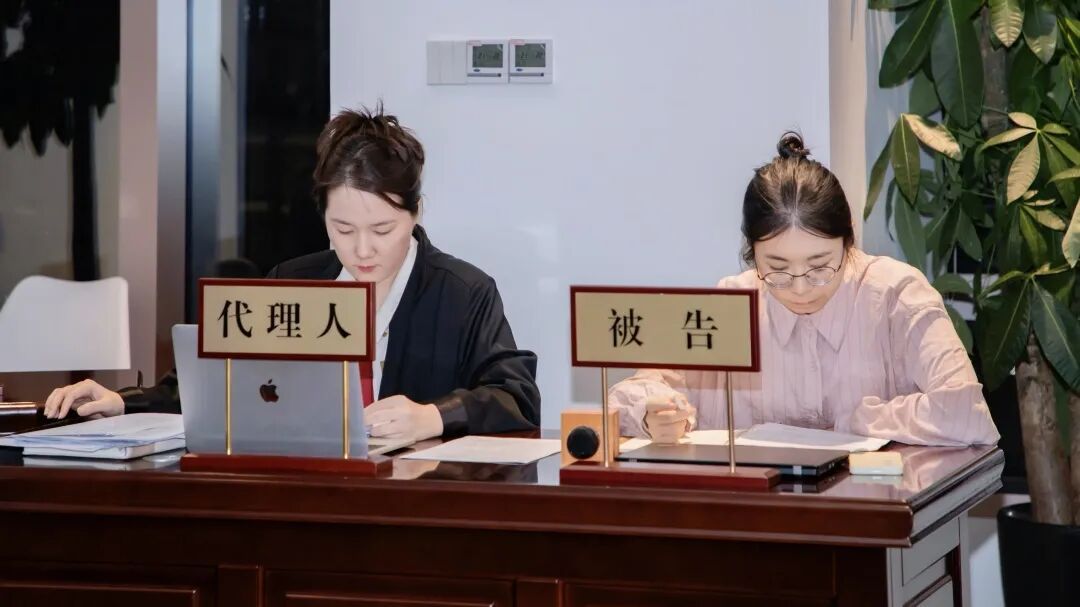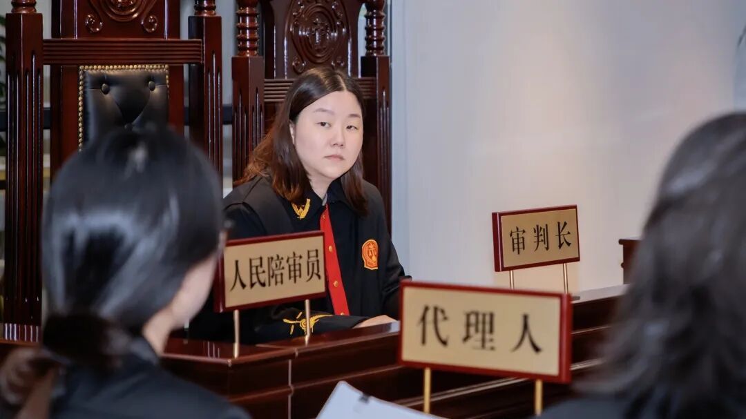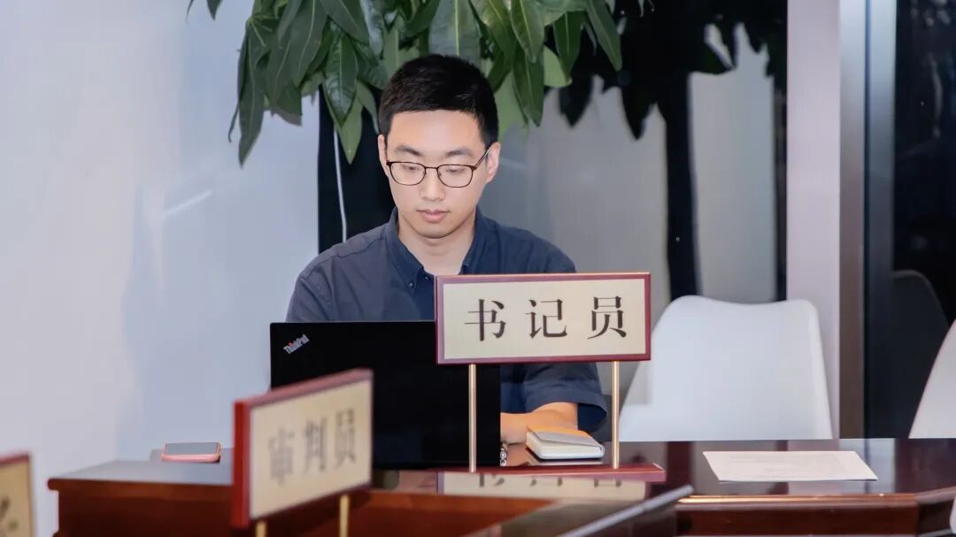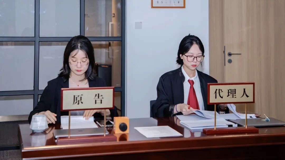 庭审开始,“书记员”朱滔韬核对原、被告双方及相关人员到庭情况并宣布庭审纪律。法槌落下,“审判长”徐洁宣布开庭,随后进行庭审事实调查。