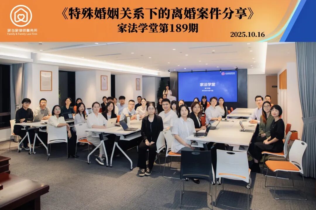 10月16日,家与家律师事务所开展第189期家法学堂活动。本期活动以“特殊婚姻关系下的离婚案件分享”为主题,主讲人为律师五部张阳律师。
