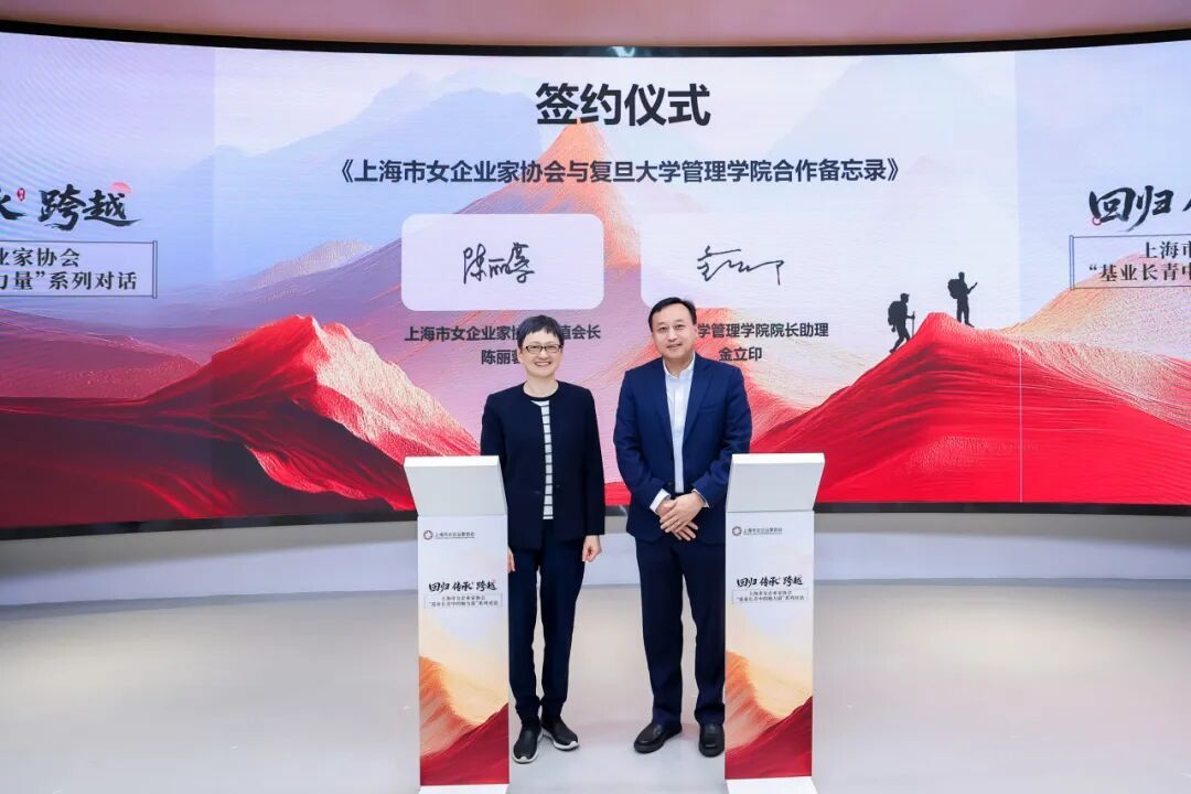 活动期间,上海市女企业家协会轮值会长陈丽蓉与复旦大学管理学院院长助理金立印签署了《合作备忘录》,赋能女性企业家成长,助力企业传承,共促产业发展。上海市女企业家协会副会长王芳、张莉,历任领导董剑珍、陆雅娟出席本次活动。