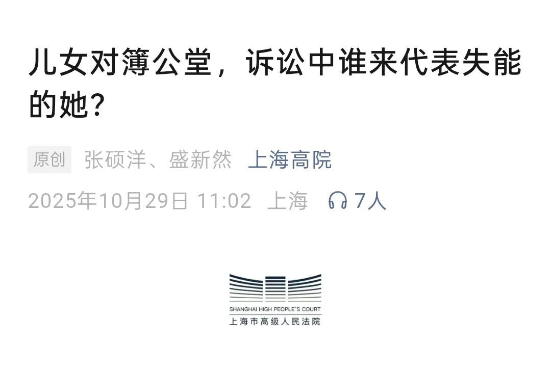 10月29日,上海高院发布“老年人权益代表人”案例文章《儿女对簿公堂,诉讼中谁来代表失能的她?》,上海律协社会公益与法律援助专业委员会委员、上海家与家律师事务所高级合伙人张欢律师担任该案“老年人权益代表人”,为失能老人维护合法权益。
