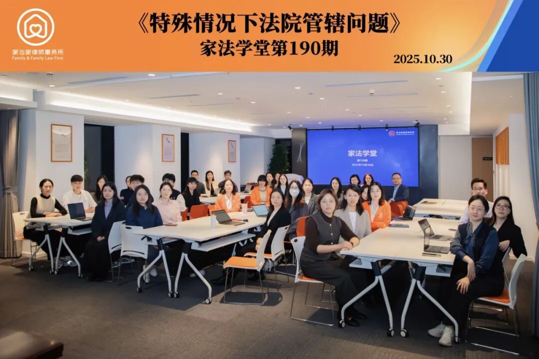10月30日,上海家与家律师事务所开展第190期家法学堂活动。本次活动以“特殊情况下法院管辖问题”为主题,由律师六部朱滔韬担任主讲人,在场律师围绕实务难点深入研讨,在交流碰撞中提升专业能力。