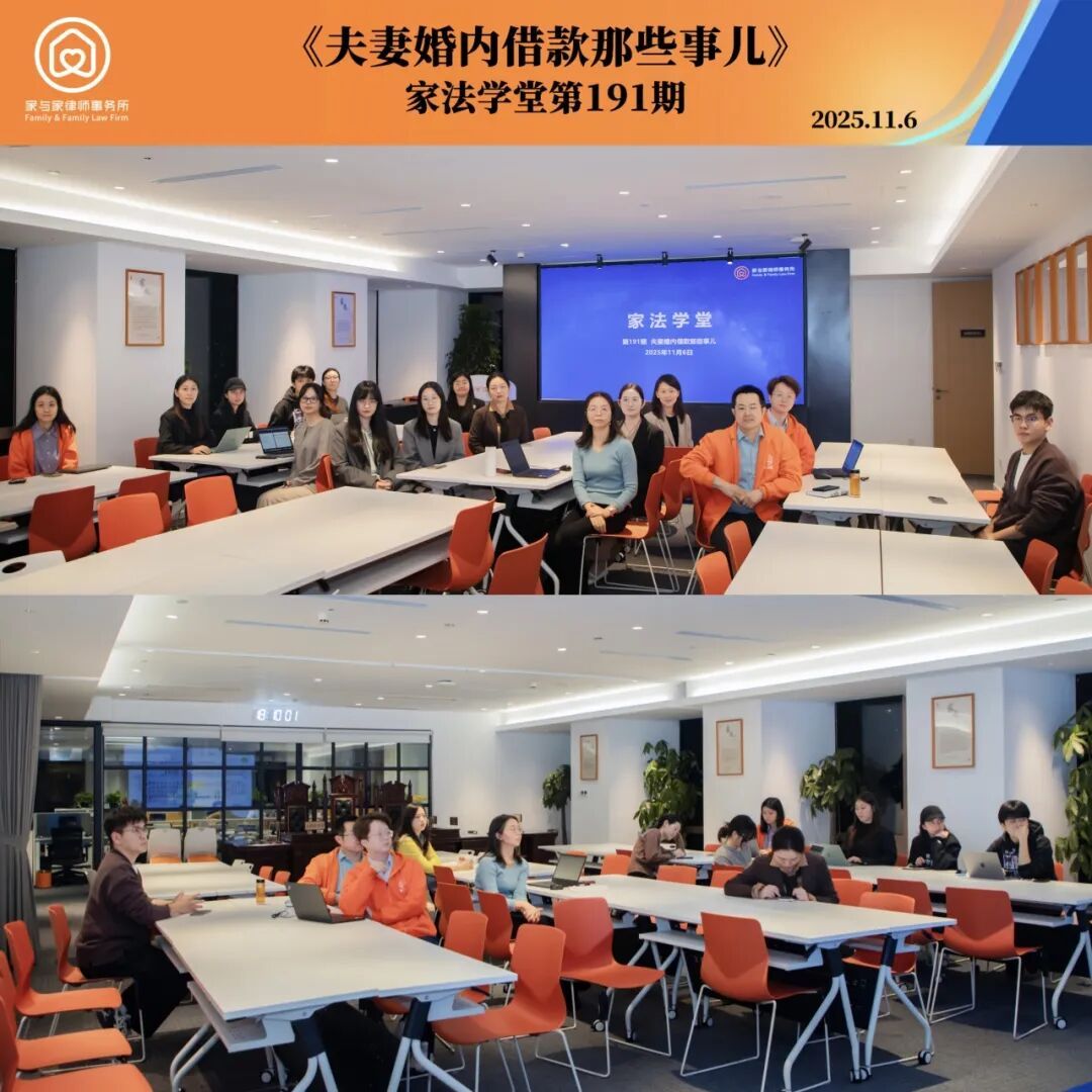 11月6日,上海家与家律师事务所开展第191期家法学堂活动。本次活动聚焦婚姻家事与财富传承案件中的高频问题——夫妻婚内借款,由律师六部孙琪担任主讲人。