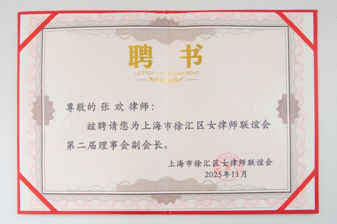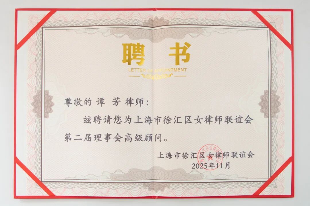 上海家与家律师事务所主任谭芳律师受聘为徐汇区女律师联谊会理事会高级顾问。上海家与家律师事务所高级合伙人张欢律师当选徐汇区女律师联谊会副会长,上海家与家律师事务所资深律师朱一菲当选徐汇区女律师联谊会理事。