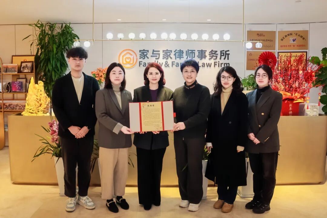 2026年2月,上海市三八红旗手联谊会会长陈岩一行到访上海家与家律师事务所,代表上海市三八红旗手联谊会向上海家与家律师事务所发来感谢信。