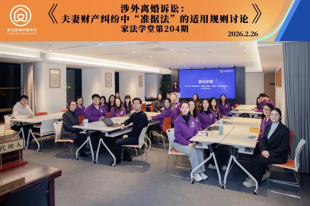 2月26日,上海家与家律师事务所开展第204期家法学堂活动,本期以《涉外离婚诉讼:夫妻财产纠纷中“准据法”的适用规则讨论》为主题,主讲人为律师三部王苗苗。