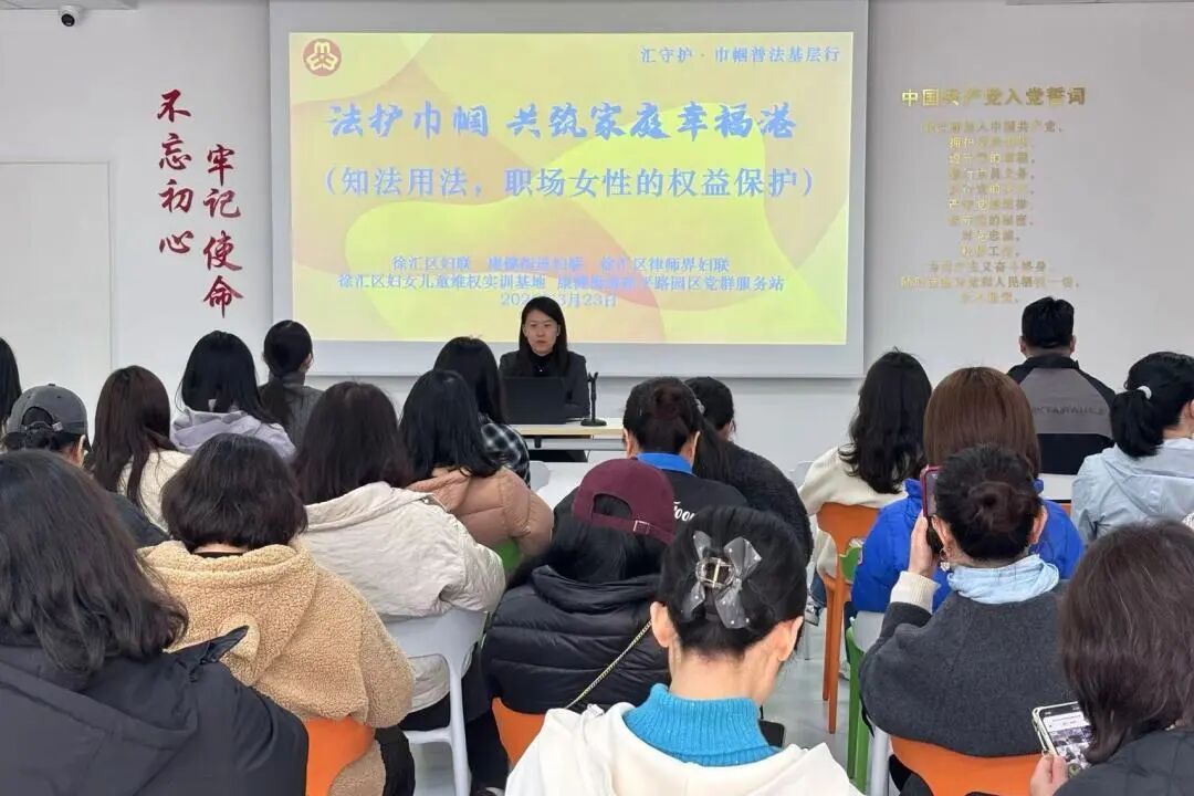 3月27日,“上海徐汇”公众号发布专题文章《为“她”赋能!这场法律讲座给职场姐妹们添“底气”》,分享在徐汇区康健街道桂平路园区党群服务站举办的“知法用法,职场女性的权益保护”法律讲座。